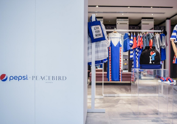 太平鳥品牌戰(zhàn)略3:跨界合作。如與百事可樂合作的聯(lián)名款時裝的首次發(fā)布。太平鳥女裝推出的emoji(表情符號)系列,童裝Mini Peace的賽車總動員系列、男裝的怪鴨系列、樂町的黃景瑜合作系列,都與年輕人喜歡的文化元素密切相關(guān)。